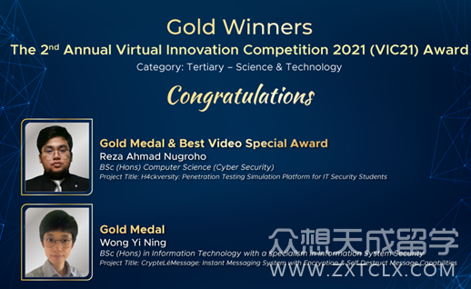 馬來西亞亞太科技大學(APU)計算機科學學院的學生Reza Ahmad Nugroho和Wong Yi Ning成功成為2021年虛擬創新大賽(VIC21)的金獎得主,該比賽屬于高等科學技術類。本次比賽由信息科學家協會(AIS)、數字信息興趣小組(DIGIT)、馬拉工業大學研究、行業和校友部和信息系統管理學會(SISMA)主辦,為教育工作者、學生和公眾提供了一個卓越的平臺,通過數字平臺參與并展示他們的創新和設計。